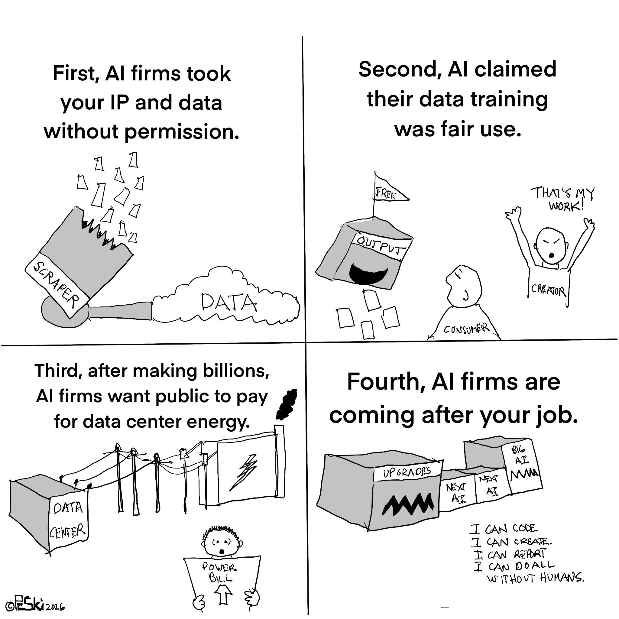 Digital Illustration "QUILL PEN SKETCH" ©2026 Ski cyberbarf FEBRUARY, 2026 AI TO END CIVILIZATION BETWEEN ROCK AND NO PLACE iTOONS BLUEPRINT COVERED IN BLOOD QUICK BYTES MOLTBOOK