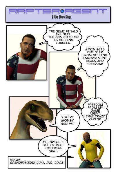 Well, that's how I'd end the strip. It is cosmic timing that Breathed's announcement coincided with our own finishing of one Real News Komix strip, Rapter Agent. In the overset file is the last dozen or so episodes, including the finale. So I know what it is like to plan the demise of a comic strip, the options on how to rap up the storyline, or go out with a bang. The reason for ending this one strip instead of dangling it in the wind like dead websites is that I normally work in batches. I can sit down and crank out comic after comic if I have the time. But time is becoming increasingly short and a valuable non-internet commodity. I think that is what happens to many webmasters who have their sights updated daily, then weekly, then monthly, then sporatic, until they sit as a peeling billboard after a year.