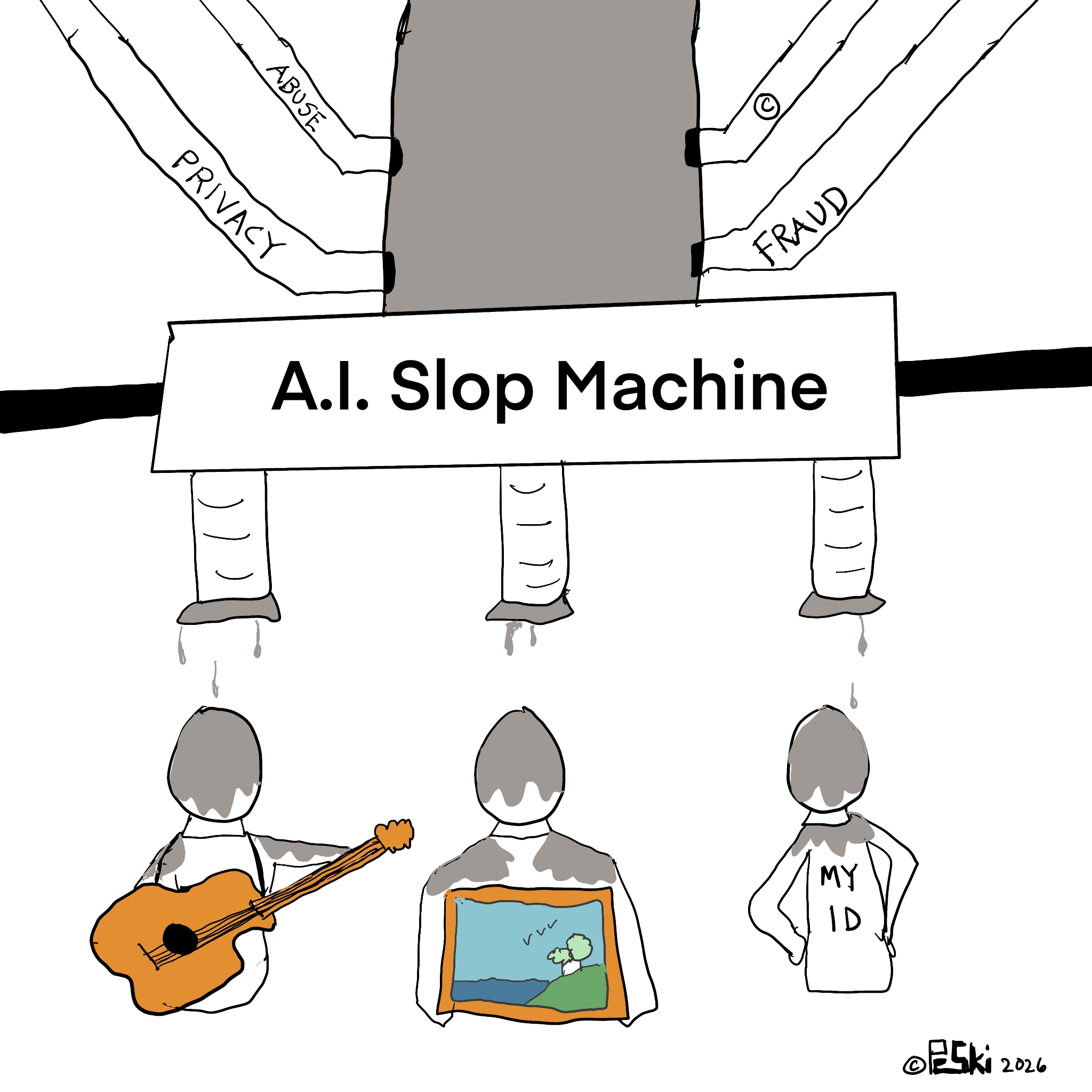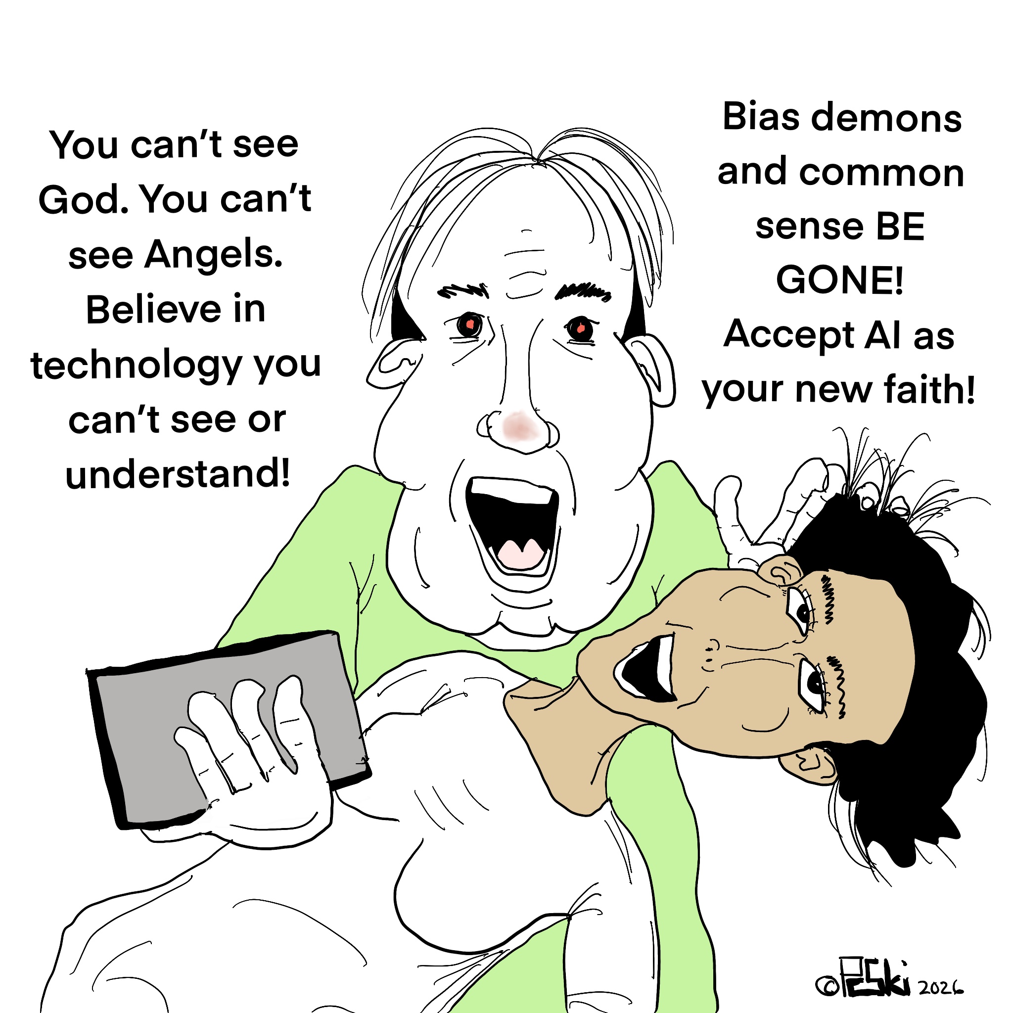 Digital Illustration "NICE" ©2026 Ski cyberbarf APRIL, 2026 GUT PUNCH HOW AI MAY FAIL iTOONS ANOTHER BLACK EYE FOUND BUT NOT LOST ON THE INTERNET QUICK BYTES WHETHER REPORT